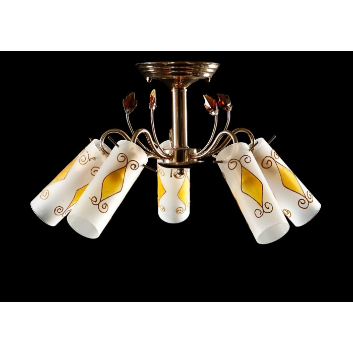 Стиль:Люстры с плафонамиВысота, см:30Диаметр, см:50Количество ламп:5MAX мощность лампы, Вт:40Напряжение, В:220Патрон:Е27Цвет:Золото, белый,желтый.Материал:Металл, стекло.Производитель:Splendid Ray(Китай)Дополнительная информация:Тип крепления:на кронштейн