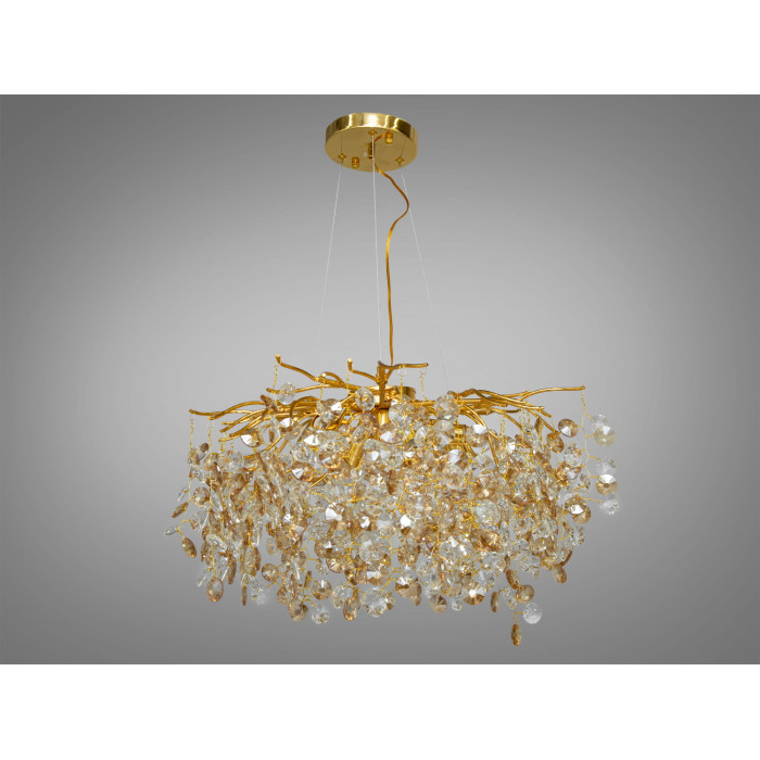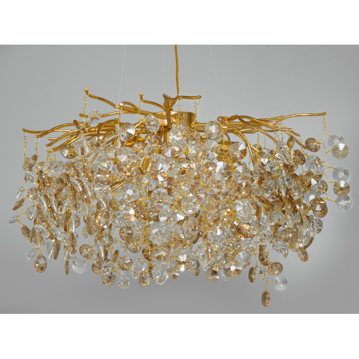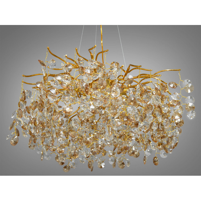 Новинка 2024. Вишукана кришталева люстра, ніби плетиво золотої осені, в якому кожен листок – кришталевий, відтворює теплу та світлу атмосферу, наповнену спогадами про сонячні дні. Дизайнерська люстра з алюмінієвим каркасом, облита золотом, і відблисками кришталів, що нагадують перші росинки на ранковому листі, створює не лише освітлення, а й емоційний зв'язок з природою і сезонами.