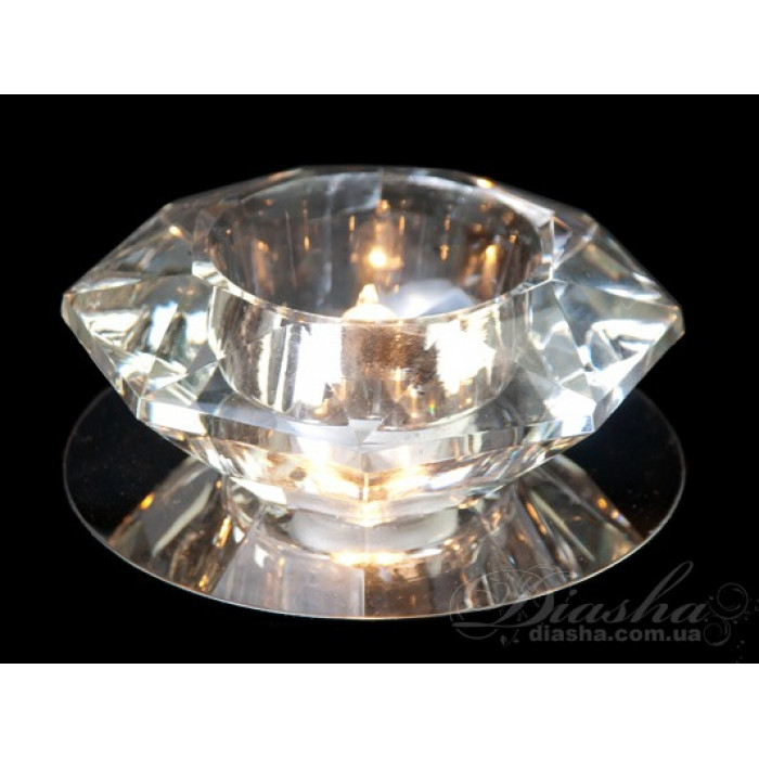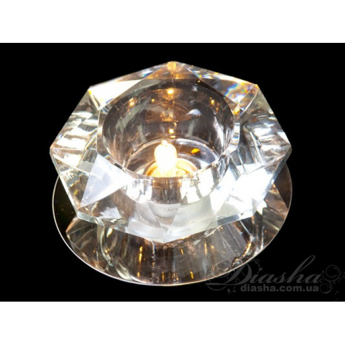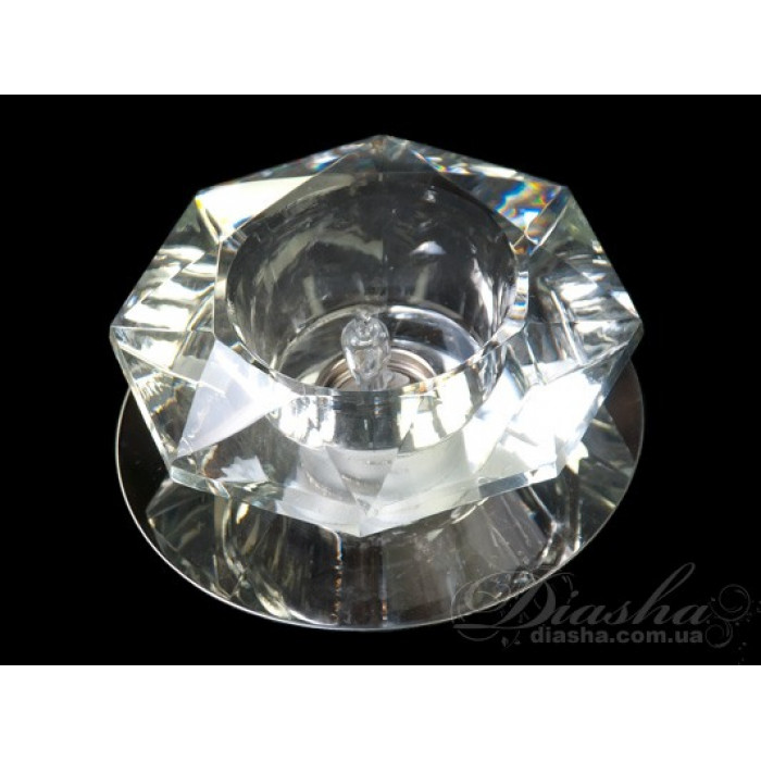 Кришталевий точковий світильник від ТМ "Діаша" створений, аби стати справжньою перлиною інтер'єру. Виготовлений із високоякісної оптичної смоли, яка імітує кришталь, він виблискує під світлом, створюючи чарівний ефект розсіяних вогнів, подібно до сонячних променів, що відбиваються від річкових хвиль. Дизайн світильника має цікаву форму з багатошаровими фасетами, що додають об'єму та глибини, органічно переходячи від центральної точки до зовнішнього краю.