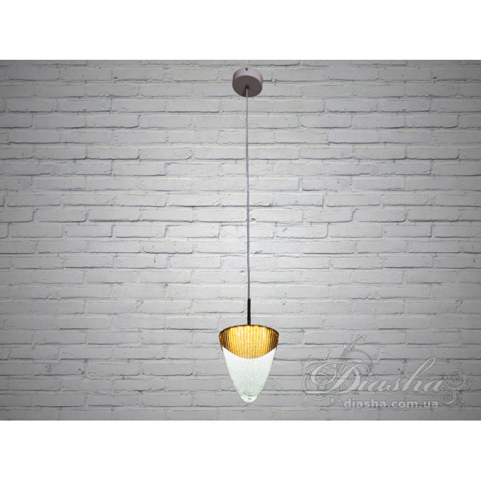 Сучасна світлодіодна люстра підвіс має елегантний дизайн. Люстра має овальний плафон, що напівпрозорий із бульбашками всередині, які створюють враження шампанського або газованої води. Колір плафона може бути чорним або коричневим, і в обох випадках він комбінується з прозорим пластиком, що дозволяє світлу розсіюватися та створювати ніжне освітлення. Люстра має діаметр 14 см, що робить її достатньо компактною для багатьох просторів.