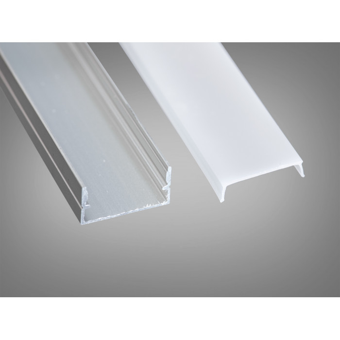 Матовий полікарбонатний розсіювач гарантує м’яке, рівномірне світло без точкового ефекту, навіть при використанні стрічок з низькою щільністю діодів.