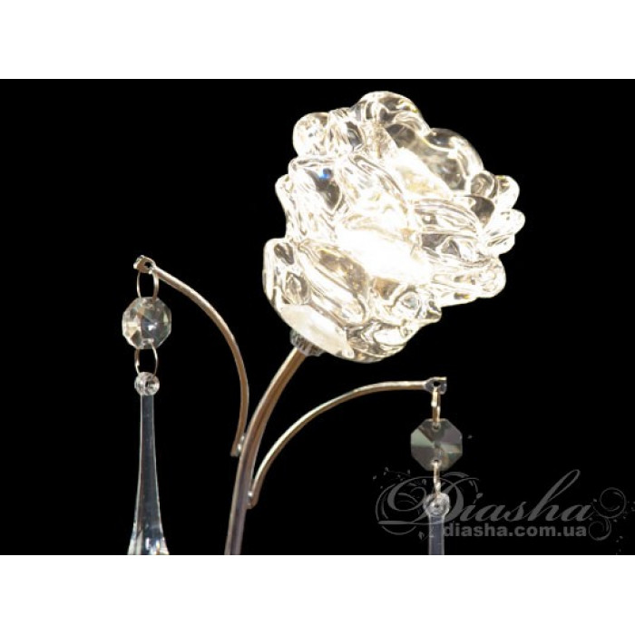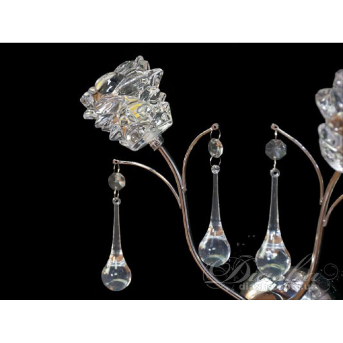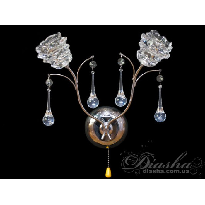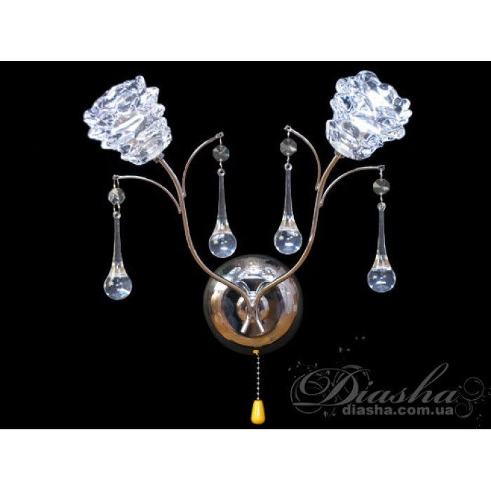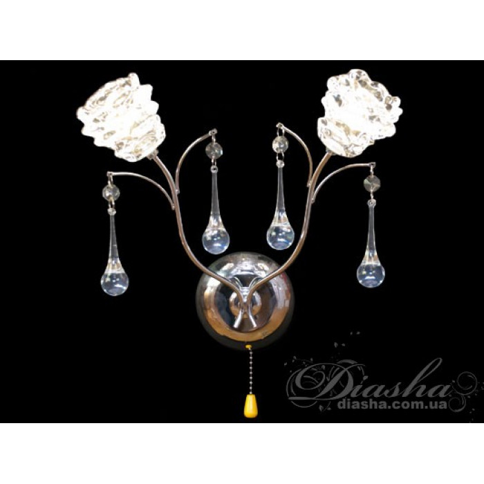 Хромований корпус бра додає розкоші та тепла дизайну, роблячи його ідеальним для класичних та традиційних просторів. Внизу корпусу розташований декоративний акриловий елемент у формі краплі, який завершує композицію, додаючи витонченості та доповнюючи загальний образ.