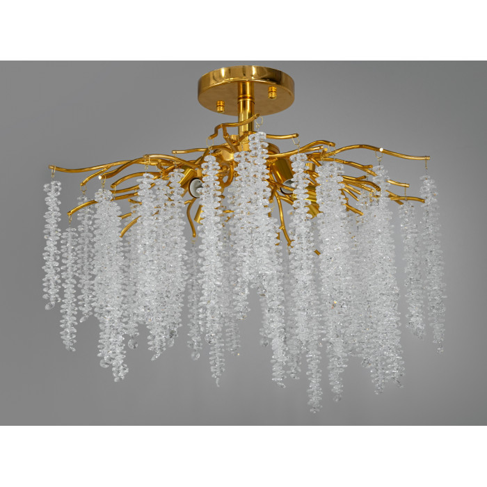 Кожен кришталь люстри, як і кожна крапля роси на ранкових квітах, відбиває та розсіює світло, створюючи магію в домашньому затишку. Така люстра не просто освітлює кімнату, вона наповнює її живою енергією природи та неповторним стилем, що говорить про неперевершений смак власника.