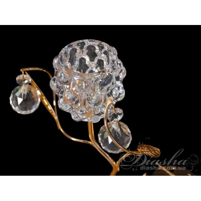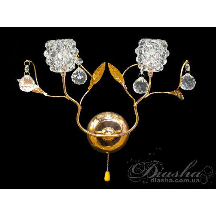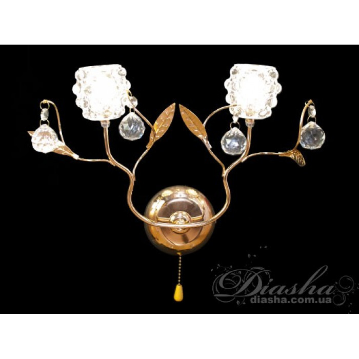 Золотистий корпус бра додає розкоші та тепла дизайну, роблячи його ідеальним для класичних та традиційних просторів. Внизу корпусу розташований декоративний акриловий елемент у формі краплі, який завершує композицію, додаючи витонченості та доповнюючи загальний образ.