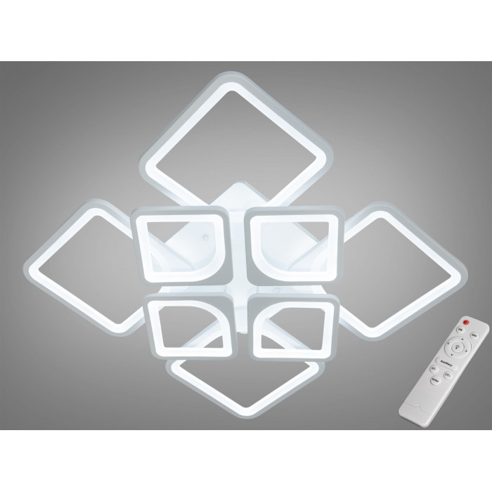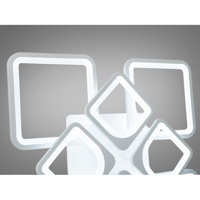 Сучасна світлодіодна люстра на 135 Вт із ІЧ пультом управління – це витончений витвір світлотехнічного мистецтва, який поєднує в собі функціональність, естетичність та здатність перетворювати простір. Її дизайн нагадує об’єкт сучасного мистецтва, в якому геометрія квадратів та ромбів створює ефект об'ємності та динамічності, що зачаровує з першого погляду. Білий колір люстри додає їй універсальності, дозволяючи стати частиною як мінімалістичних, так і сучасних інтер’єрів, підкреслюючи їх елегантність і легкість. Вона неначе оживає на стелі, створюючи відчуття гармонії та затишку.