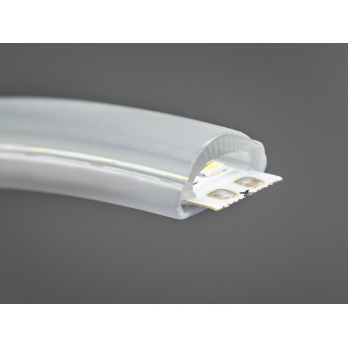 Світлодіоди типу 2835 встановлені з високою щільністю — 180 діодів на метр, що забезпечує щільне, насичене та безперервне світіння. Візуально стрічка виглядає як цілісний потік світла — без пробілів, затемнених зон чи розривів. Така структура дозволяє застосовувати її не лише у декоративних, а й у функціональних проєктах, де світло відіграє ключову роль. Ідеальне рішення для освітлення великих площ, комерційних вітрин або об’єктів, які потребують виразної світлової лінії.