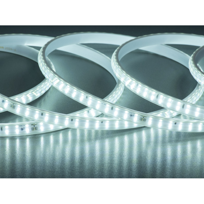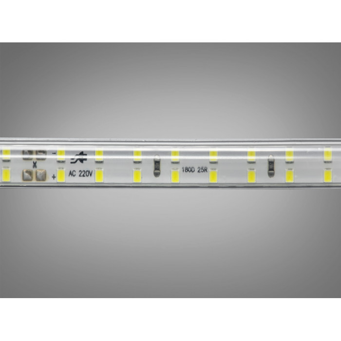 Лед стрічка працює напряму від 220 В постійного струму, що дозволяє підключати її без додаткових трансформаторів. Це значно спрощує монтаж і скорочує витрати на інсталяцію, особливо при великій протяжності освітлення. Вона чудово підходить для освітлення довгих фасадів, зовнішніх проходів, ангарів, парковок або великих внутрішніх залів, де важлива довжина і рівномірність світлової лінії. Підключення до мережі 220 В робить її надійним і безпечним рішенням для професійного використання.