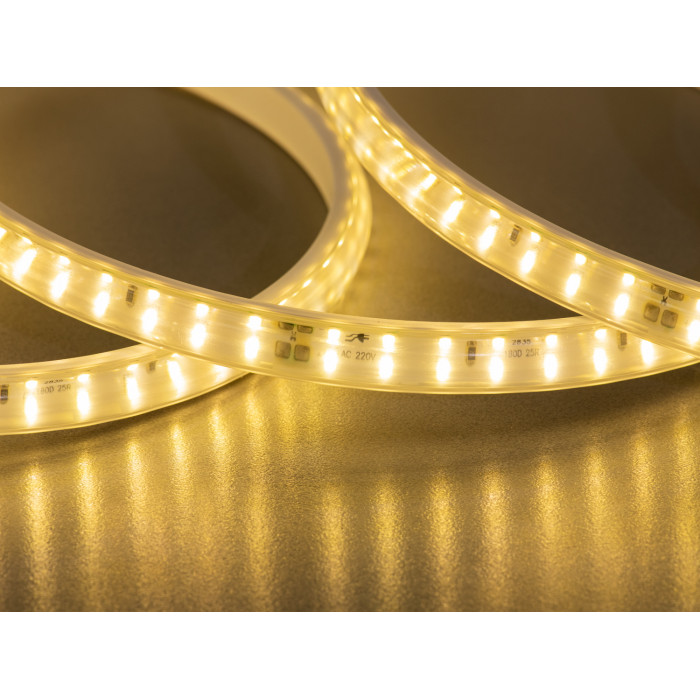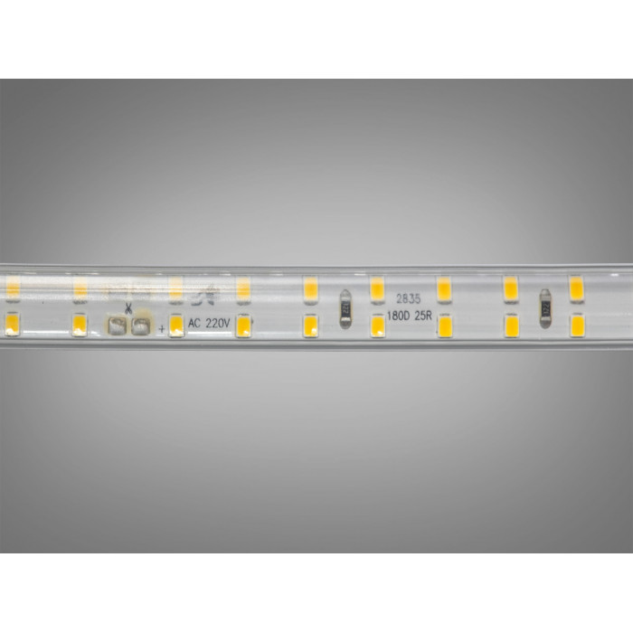 Працює дана лед стрічка від 220 В постійного струму, що дозволяє підключати її напряму до мережі без потреби у блоках живлення. Це значно полегшує процес інсталяції, особливо в масштабних проєктах, де важлива довжина, стабільність і простота. Завдяки високій напрузі ви можете використовувати довгі лінії без втрат яскравості. Це оптимальне рішення для освітлення фасадів, веранд, терас, балконів, піддашків, а також для використання у просторих інтер’єрах — холах, вітальнях, залах або кав’ярнях.