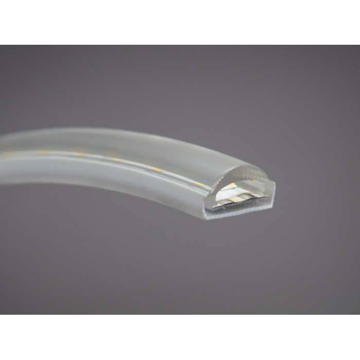 В основі цієї моделі — світлодіоди типу 2835, розміщені з щільністю 180 діодів на метр, що забезпечує щільне, безперервне й надзвичайно рівномірне світіння. Стрічка виглядає як єдина світлова лінія — без видимих інтервалів або затемнень, незалежно від кута огляду. Це дозволяє використовувати її в дизайнерських рішеннях з відкритим монтажем, де стрічка стає видимою частиною декору, а не лише джерелом світла.