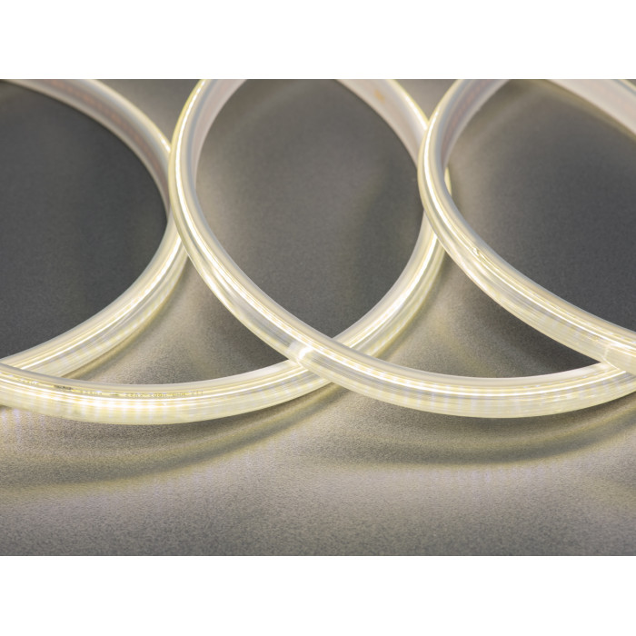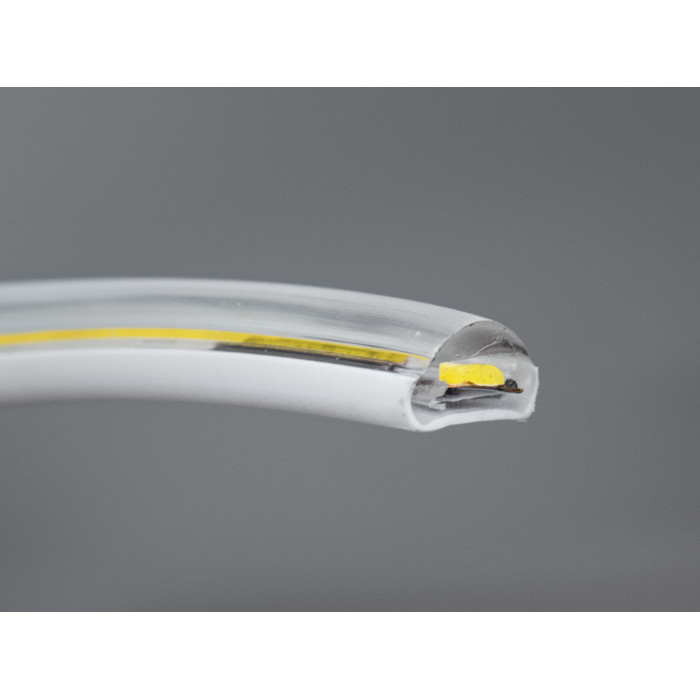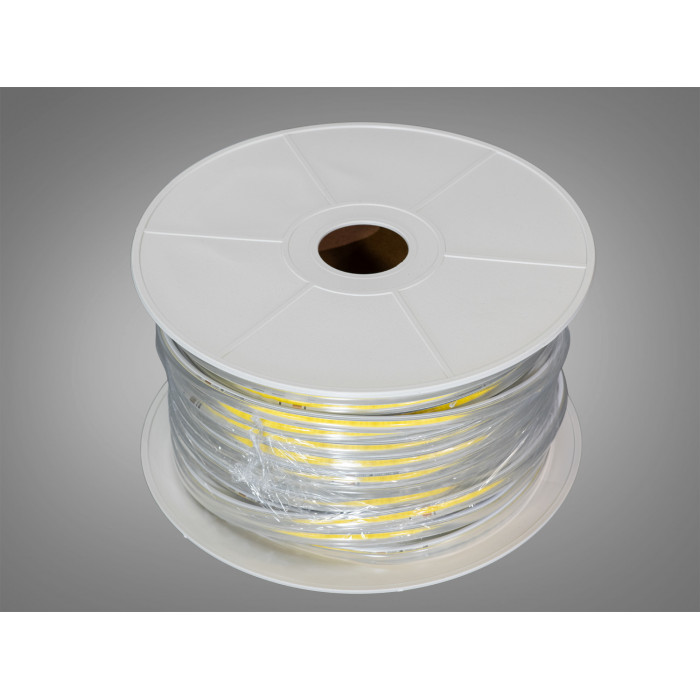 COB led стрічка з напругою живлення 220 В постійного струму дозволяє пряме підключення до електромережі без потреби у трансформаторі. Це значно спрощує процес інсталяції, особливо в довгих проєктах. Світлодіоди типу COB розміщено з щільністю 288 діодів на кожному метрі COB led стрічки, що забезпечує безперервну, однорідну лінію світла, подібну до неонового шнура. Візуально така стрічка не дає жодних світлових "точок", лише м’який рівномірний потік.