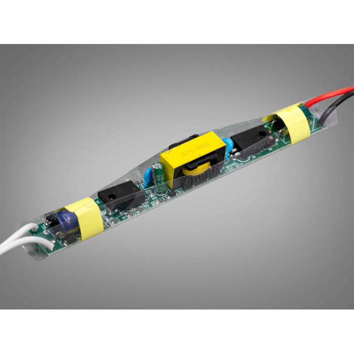 Усередині пристрій повністю залитий захисним матеріалом, завдяки чому його можна назвати блоком живлення з компаундом для LED підсвітки, стійким до вібрацій і вологи.
