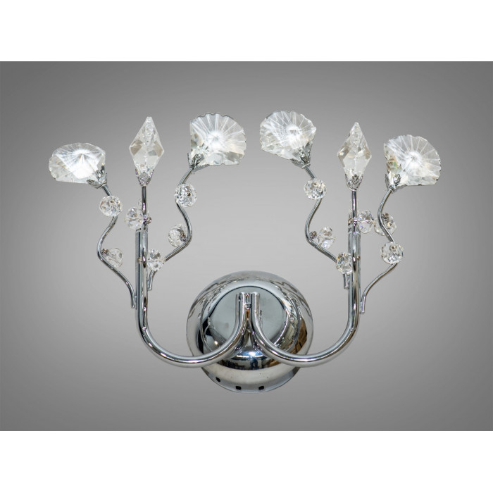 Ця модель бра оживляє стіни, перетворюючи їх у полотно для ніжного букету з квітів, які здаються наче вирощені зі світла. Золотисті стебла граційно вигинаються, тримаючи на собі блискучі кристали, що імітують квіткові бутони та пелюстки. Дизайн з елементами кристалів додає світильнику привабливого блиску та ефекту розсіювання світла, яке створює неповторну атмосферу у просторі.