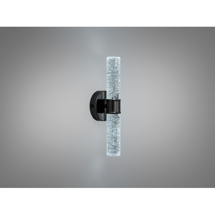 Настінне LED бра потужністю 5 Вт у кольорі чорний хром створює м’яке акцентне освітлення та підтримує чисту геометрію сучасного мінімалізму. Прозорі кришталеві циліндричні елементи з ефектом бульбашок делікатно розсіюють світло, тому воно сприймається комфортно для очей у коридорах, вітальнях чи біля дзеркала. Завдяки лаконічній формі світильник легко поєднується з іншими джерелами світла в інтер’єрі.