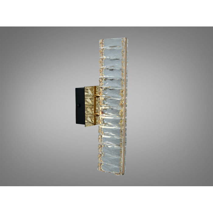 Настінне бра LED 8 Вт у кольорі золото — це акуратне акцентне світло з кришталево-скляним плафоном геометричної форми. Модель орієнтована на сучасні інтер’єри, де важливі чисті лінії, помірна яскравість та теплий декоративний ефект. Конструкція передбачає один світловий модуль і підійде для підсвічування зони відпочинку, картини, дзеркала (поза вологими зонами) або як додаткове світло у коридорі.