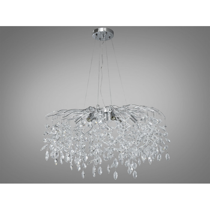 Дивовижна підвісна кришталева люстра для вітальні від ТМ «Діаша», зображена на фото, вражає своєю елегантністю та розкішшю. Колір хром додає виробу сучасного блиску та стилю, роблячи його ідеальним вибором для інтер′єрів різних стилів. Люстра складається з багатьох кришталевих підвісок, які виблискують під світлом, створюючи неймовірну гру відблисків і відтінків. Конструкція люстри складається з алюмінієвих гілок, що легко змінюють форму, дозволяючи адаптувати виріб під будь-які потреби та дизайн приміщення. Це робить люстру не тільки естетично привабливою, але й функціональною.