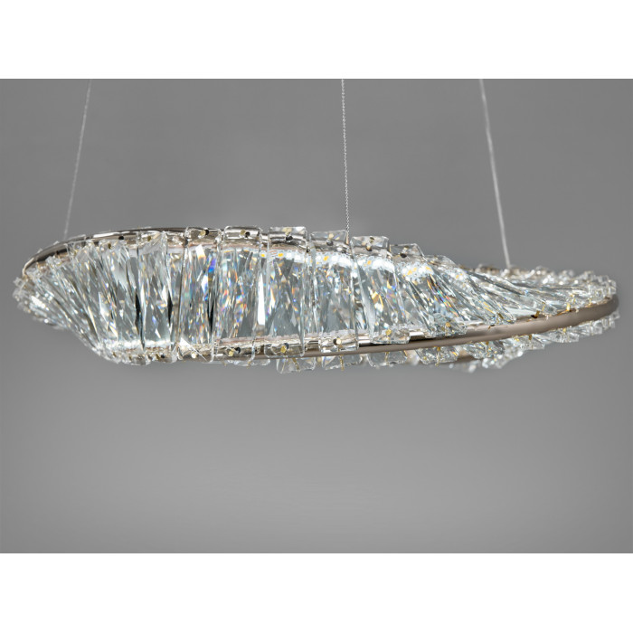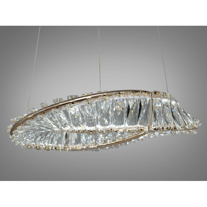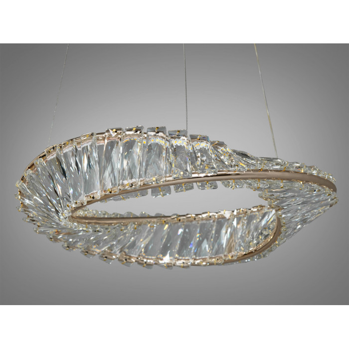 Кришталева люстра на тросах підвісах є витонченим та елегантним вибором, який з легкістю інтегрується у будь-який дизайн простору, доповнюючи його яскравістю світла та блиском кришталів. Її м'яке, золотисте світіння, потужність в 45 Вт, та унікальна конструкція, що нагадує стрічку Мебіуса, роблять цю люстру справжнім твором мистецтва. Оснащена сучасними світлодіодами, люстра обіцяє довговічність і енергоефективність, зменшуючи витрати на електроенергію та потребу в частій заміні джерел світла.