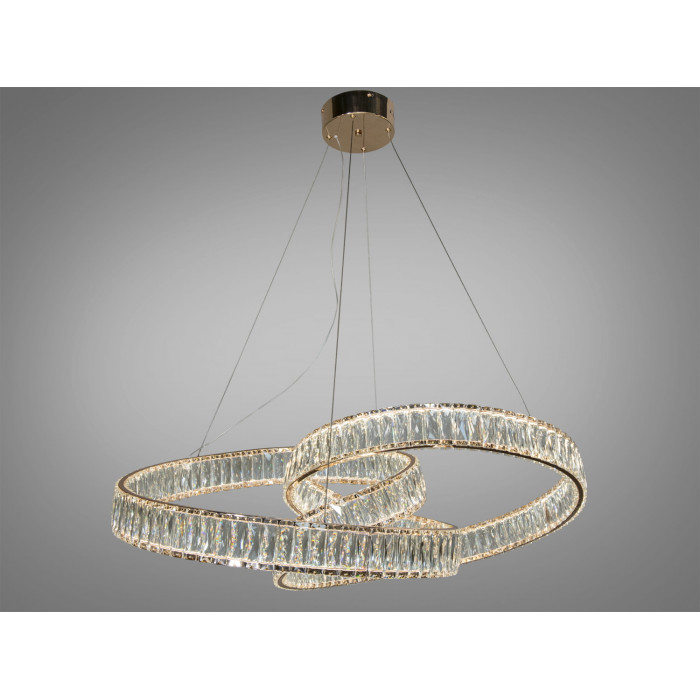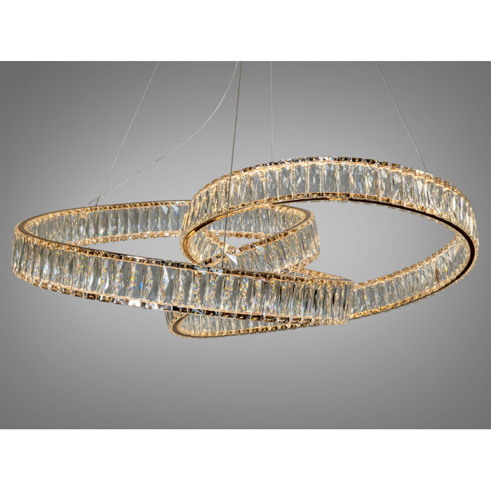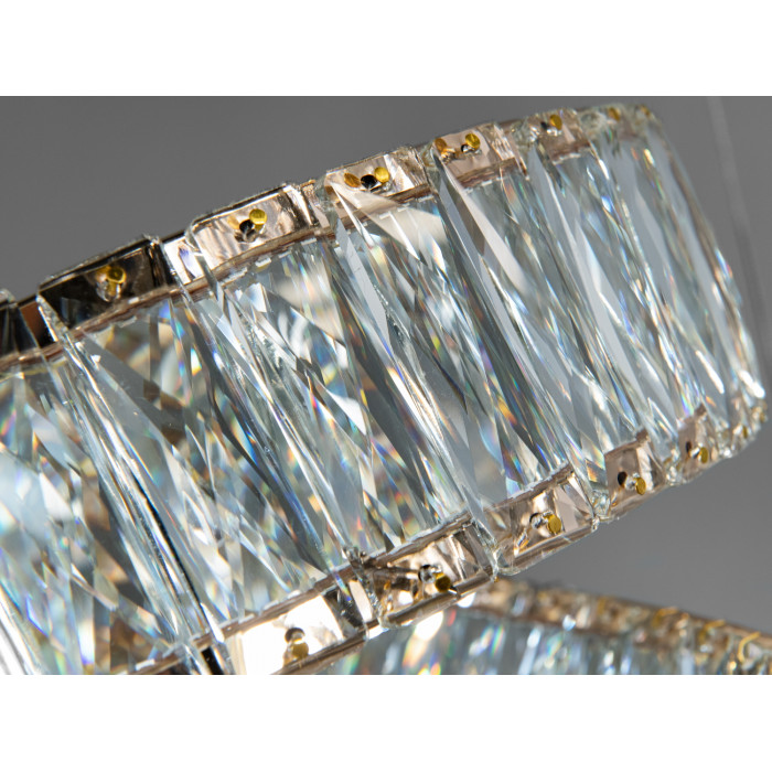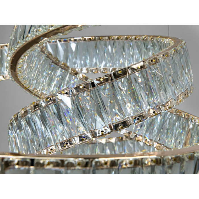 Стрічки люстри обрамлені виблискуючим кришталем, що переливається у світлі ледів, створюючи незабутнє сяйво і блиск. Такий стильний дизайн люстри поєднує в собі грацію і технологічність, роблячи цей світильник не просто джерелом світла, а й центральним елементом декору, здатним додати кімнаті характеру та шарму.