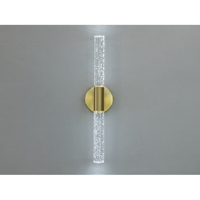 Дизайнерське світлодіодне бра від ТМ "Діаша" — це елегантність і сучасність в одній деталі. Його зовнішній вигляд заворожує: тонкий акриловий плафон із вбудованими бульбашками світла створює ілюзію невагомості. Золота металева основа додає розкішного блиску, гармонійно поєднуючись із теплим сяйвом LED підсвічування. Цей настінний світильник стане справжньою прикрасою будь-якого інтер’єру, наповнюючи його затишком і стилем.