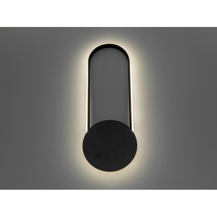 Світильник має унікальну овальну форму з гладкими лініями, що плавно переходять одна в одну, створюючи безперервний контур світла. Центральна частина світильника покрита матовим склом, яке м'яко розсіює світло, запобігаючи сліпучому ефекту та забезпечуючи комфорт для очей.