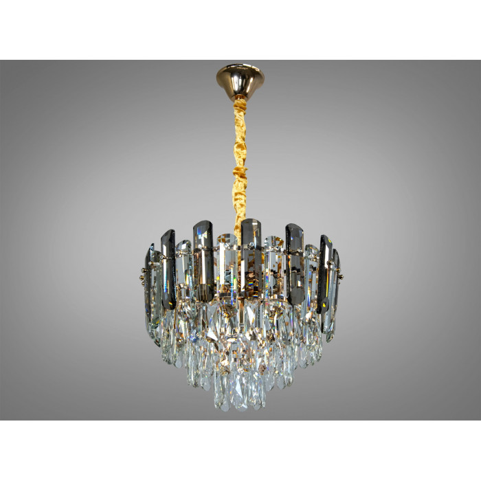 Уявіть собі витончену хромовану основу, яка виблискує як озеро під літнім сонцем, відбиваючи кожен промінь світла від безлічі криштальних підвісок. Ця люстра стане справжнім магнітом для очей у вашому домі, привносячи розкіш та просторову велич. Кришталі різних кольорів – від матованих чорних до прозорих – створюють гіпнотичний світловий балет, заворожуючи своєю грою відблисків та глибиною блиску.