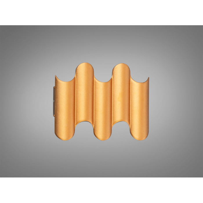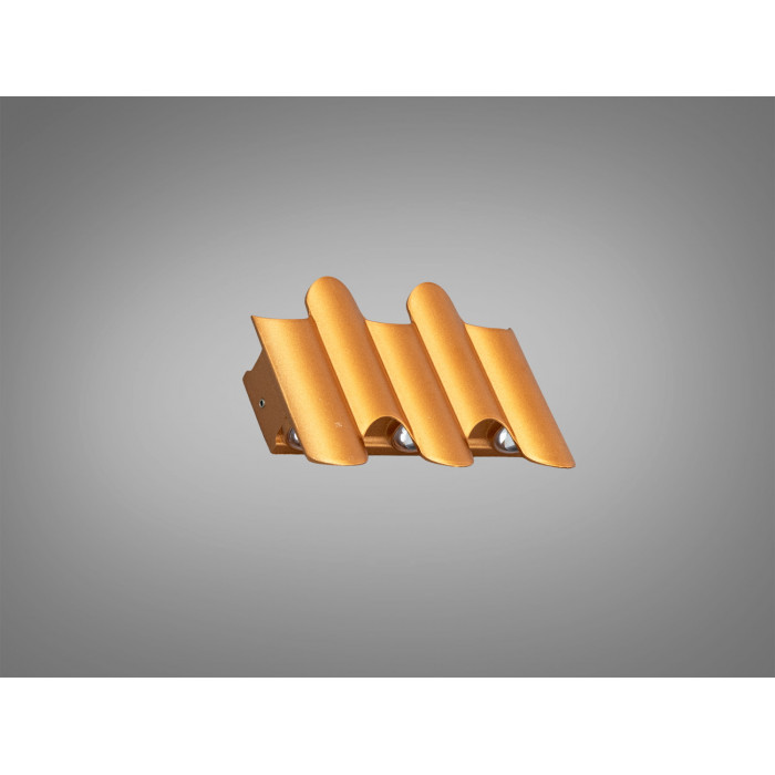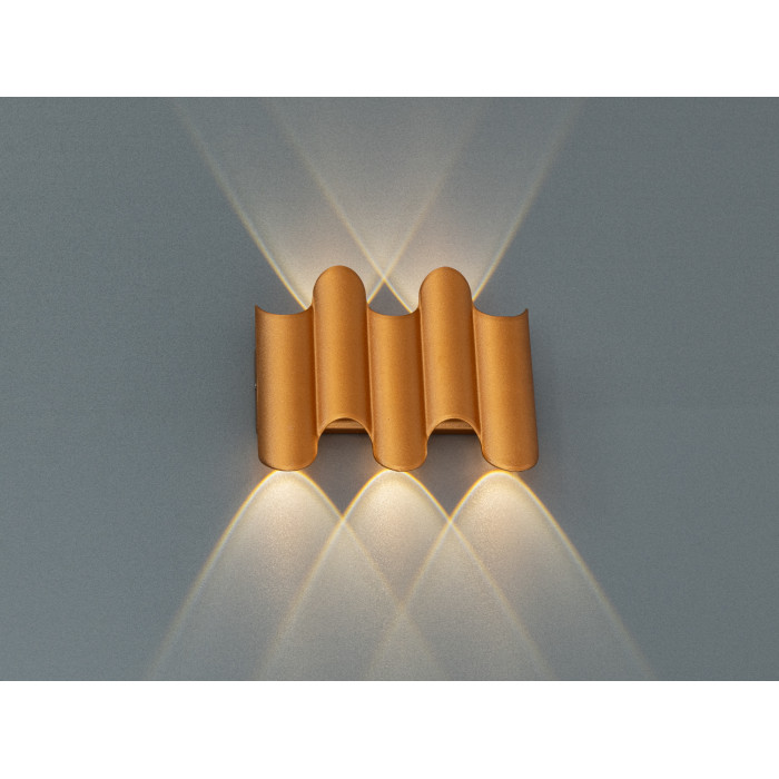 Корпус виконано з металу; вигнуті секції утворюють ритм з трьох напівциліндрів, що допомагає рівніше розподіляти світловий потік уздовж площини стіни. Бронзове покриття додає теплих відтінків і поєднується з природними матеріалами — деревом, каменем, клінкером. Джерелом світла виступає LED підсвітка потужністю близько 5 W, якої зазвичай достатньо для декоративного підкреслення зон без зайвого споживання електроенергії. Схема up down спрямовує промені догори та донизу, зменшуючи кількість прямого світла в очі та формуючи охайні світлові плями.