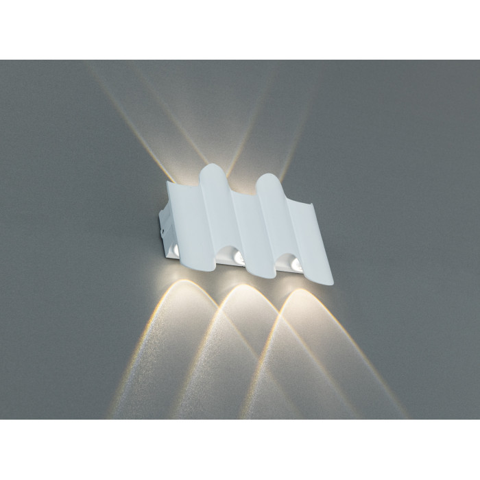 Цей фасадний світильник — справжній митець у грі світла і тіні, що з легкістю перетворює монотонність буденної стіни на витвір мистецтва. Він прокладає світлові доріжки, які нагадують відблиски місяця на поверхні спокійного озера, вносячи затишок та магію в кожен простір. Вдень цей світильник майже зливається зі стіною, зберігаючи свою таємницю до вечора, коли він оживає і демонструє свою майстерність, освітлюючи архітектуру з бездоганним вибором естетики та функціональності.