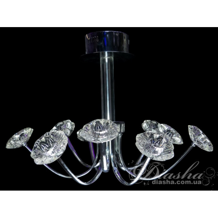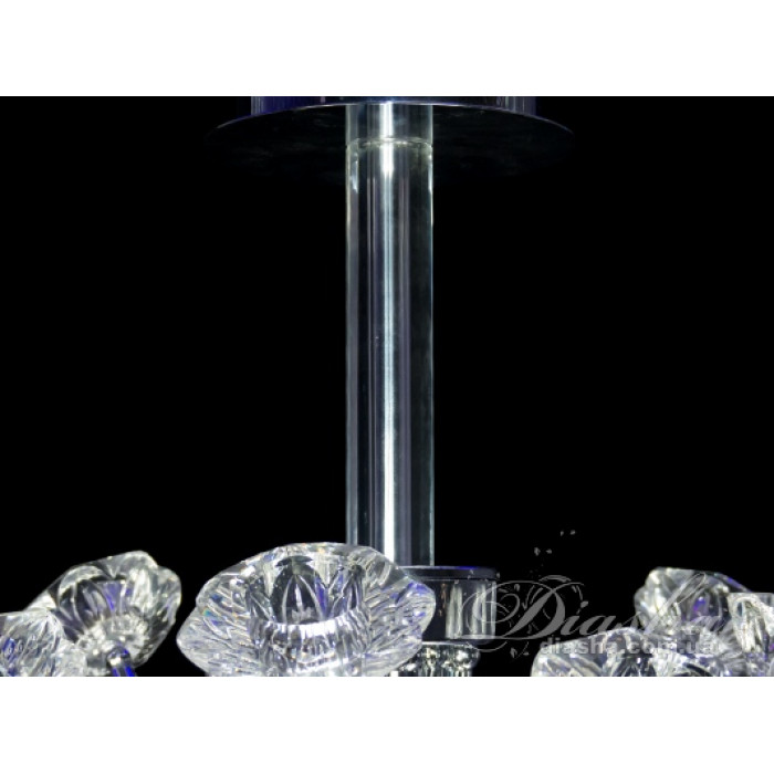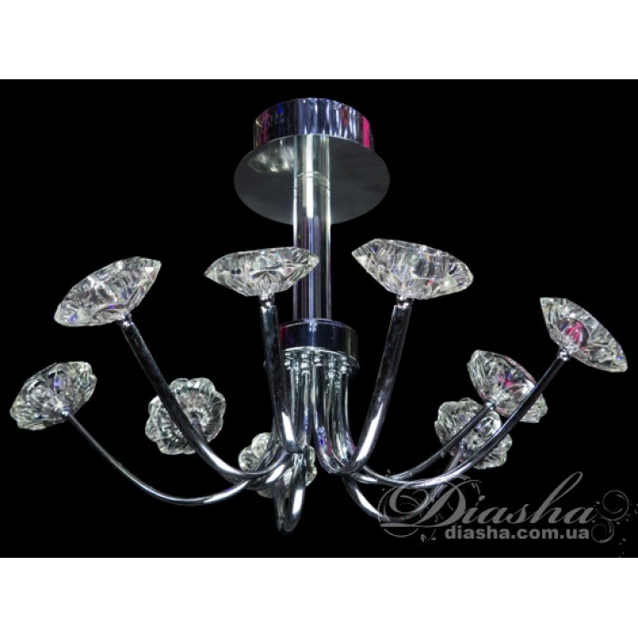 Стебла люстри вигнуті з елегантністю та легкістю, ніби граційні танцюристи, замерзлі в па. Вони випромінюють благородство хрому, що сяє як дзеркало, в якому відбивається балет світлових ігор. Кожен кришталевий елемент люстри здається оживленим, наче він має власну історію, яку розповідає мовою блискіток та відблисків.