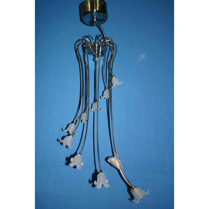 Стиль:Галогеновые люстрыВысота, см:140Диаметр, см:50Количество ламп:10MAX мощность лампы, Вт:20Напряжение, В:220Патрон:G4Цвет:хром, белыйМатериал:металл, стеклоПроизводитель:Splendid Ray(Китай)Дополнительная информация:Тип крепления:на кронштейн