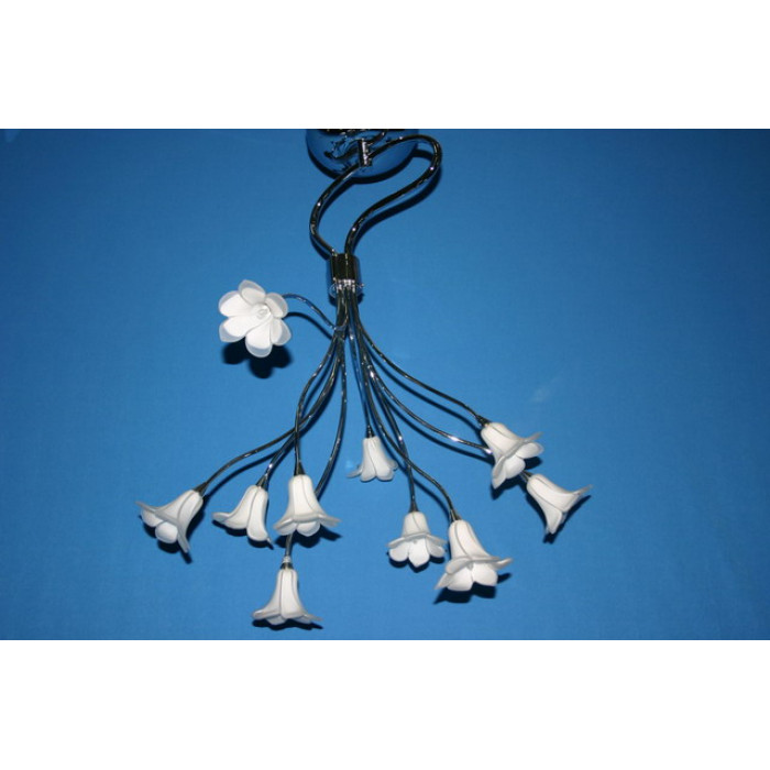 Стиль:Галогеновые люстрыВысота, см:72Диаметр, см:45Количество ламп:10MAX мощность лампы, Вт:20Напряжение, В:220Патрон:G4Цвет:Хром,белый,синий.Материал:Металл,стекло.Производитель:Splendid Ray(Китай)Дополнительная информация:Тип крепления:на кронштейн