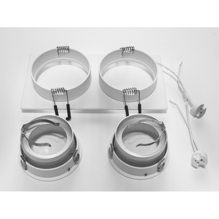 Сучасний здвоєний точковий світильник в гіпсокартон з алюмінію, пофарбований у нейтральний білий колір, є справжнім шедевром дизайну від ТМ "Діаша".