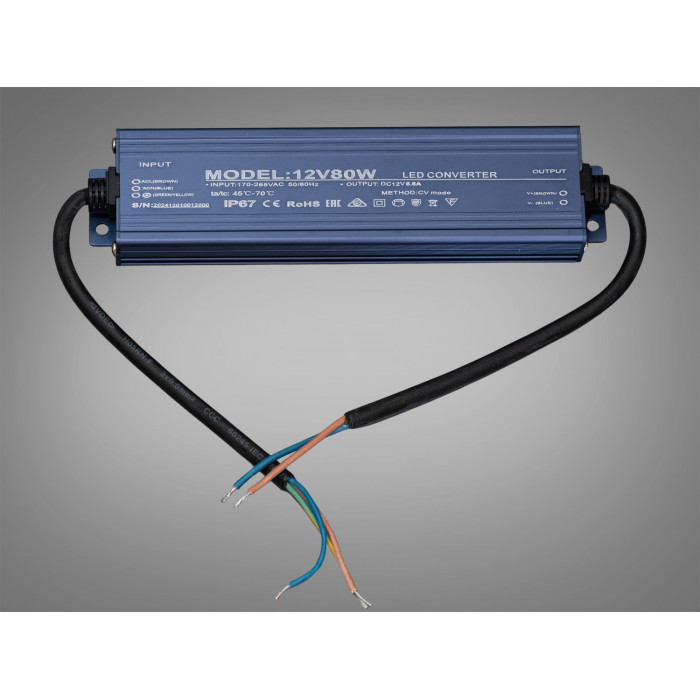 Професійний герметичний адаптер живлення 12V 80W — це ідеальне рішення для архітектурної і фасадної підсвітки, освітлення рекламних вивісок, ландшафтного освітлення або промислових об'єктів.