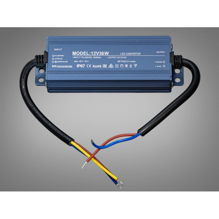 Герметичний блок живлення IP68 на 36W оптимізований для мінімізації втрат енергії, забезпечуючи ефективне та економне споживання електроенергії.