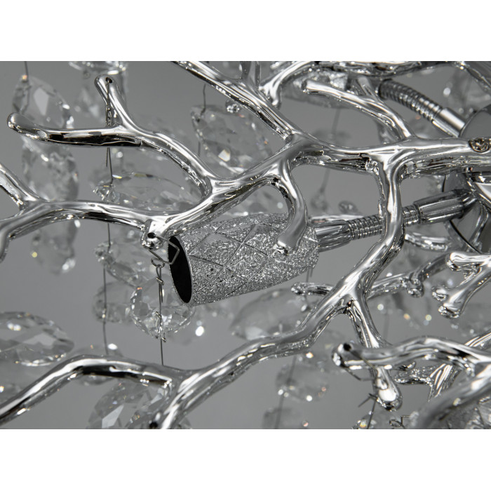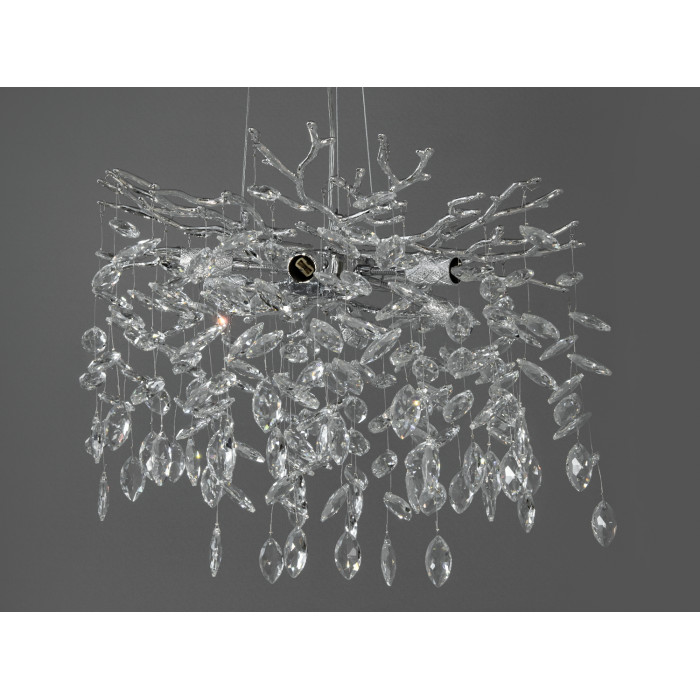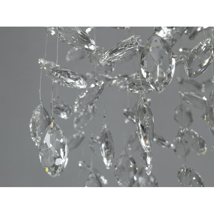 Граційна підвісна кришталева люстра «Гліцинія» від ТМ "Діаша" вражає своєю елегантністю та розкішшю. Вона має 6 ламп з патронами G9, що забезпечує яскраве та рівномірне освітлення. Колір-хром додає люстрі сучасного вигляду, підкреслюючи її витончений дизайн. Люстра нагадує пишну гліцинію, завдяки своїм кришталевим підвіскам, які імітують гілки та листя цієї прекрасної рослини.