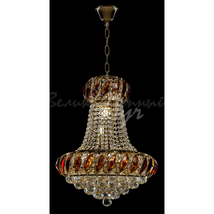 Стиль:Хрустальные люстрыВысота, см:70-93Диаметр, см:45Количество ламп:12MAX мощность лампы, Вт:60Напряжение, В:220Патрон:Е27Цвет:Золото, коричневый, белый.Материал:Металл, стекло, хрусталь.Производитель:Splendid Ray(Китай)Дополнительная информация:Тип крепления:на крючок