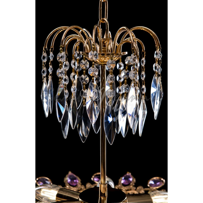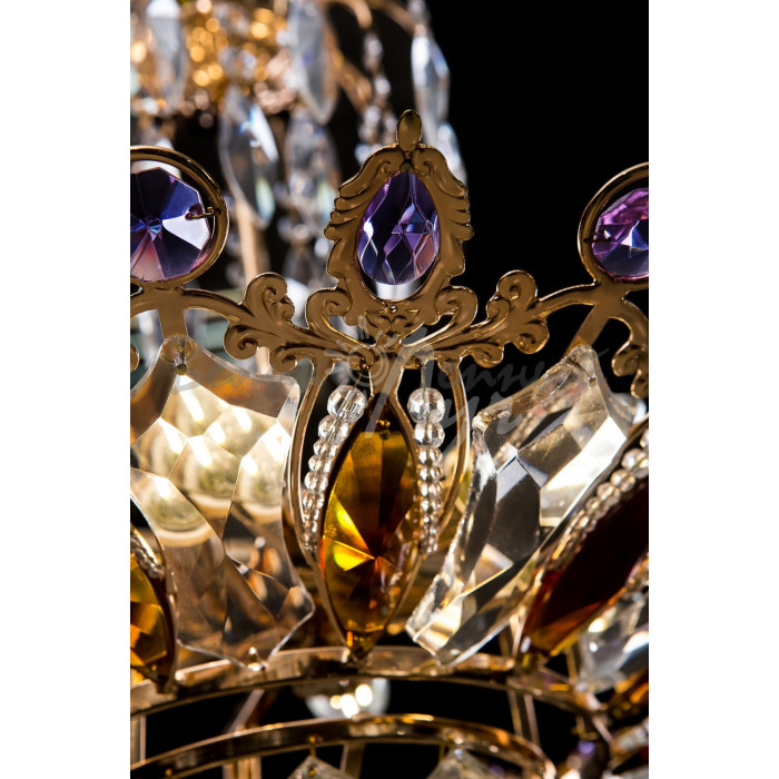 Стиль:Хрустальные люстрыВысота, см:91Диаметр, см:53Количество ламп:8MAX мощность лампы, Вт:60Напряжение, В:220Патрон:Е14Цвет:Золотой, белый, коричневый, фиолетовыйМатериал:Металл, стекло, хрустальПроизводитель:Splendid Ray(Китай)Дополнительная информация:Тип крепления:на крючок