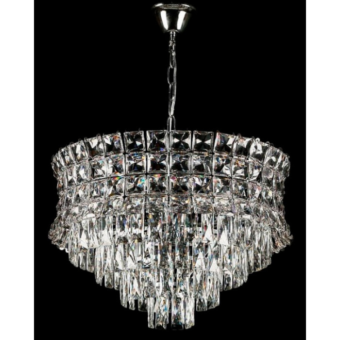 Стиль:Хрустальные люстрыВысота, см:55-95Диаметр, см:80Количество ламп:14MAX мощность лампы, Вт:40Напряжение, В:220Патрон:Е14Цвет:хром, белый.Материал:металл, хрустальПроизводитель:Splendid Ray(Китай)Дополнительная информация:Тип крепления:на крючок