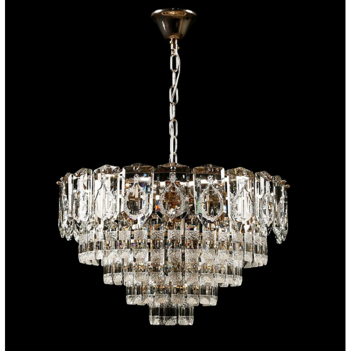 Стиль:Хрустальные люстрыВысота, см:45-75Диаметр, см:50Количество ламп:10MAX мощность лампы, Вт:40Напряжение, В:220Патрон:Е14Цвет:золото, белый.Материал:металл, хрустальПроизводитель:Splendid Ray(Китай)Дополнительная информация:Тип крепления:на кронштейн