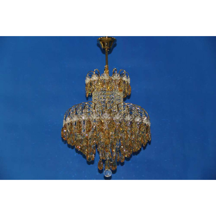 Стиль:Хрустальные люстрыВысота, см:60-100Диаметр, см:45Количество ламп:10MAX мощность лампы, Вт:40Напряжение, В:220Патрон:Е27Цвет:Золото, белый.Материал:Металл, стекло.Производитель:Splendid Ray(Китай)Дополнительная информация:Тип крепления:на крючок
