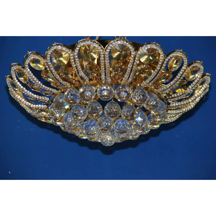 Стиль:Хрустальные люстрыВысота, см:20Диаметр, см:50Количество ламп:8MAX мощность лампы, Вт:40Напряжение, В:220Патрон:Е27Цвет:Золото, белый, бежевый.Материал:Металл, стекло, хрусталь.Производитель:Splendid Ray(Китай)Дополнительная информация:Тип крепления:на кронштейн
