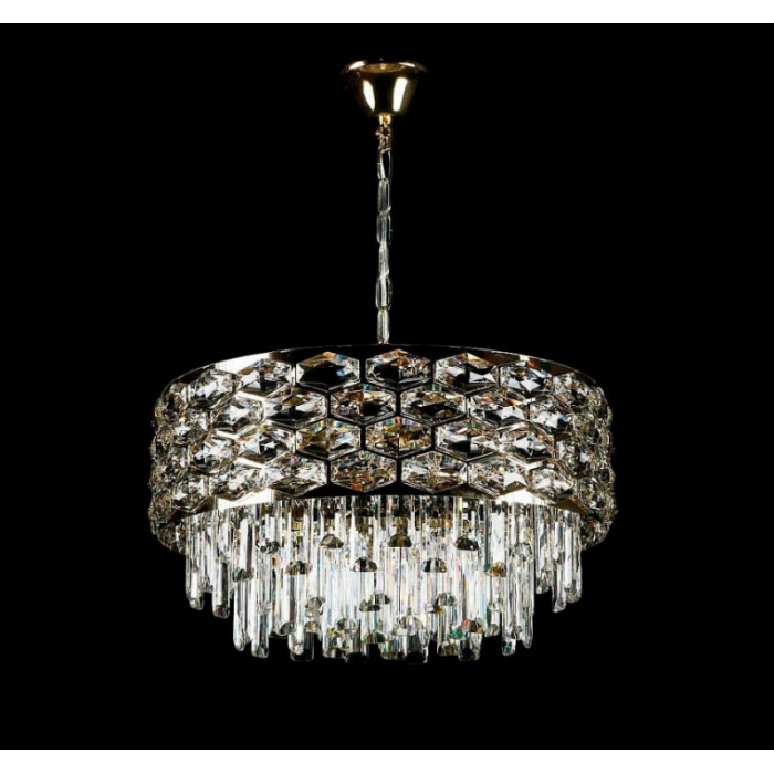 Стиль:Хрустальные люстрыВысота, см:40-75Диаметр, см:40Количество ламп:8MAX мощность лампы, Вт:40Напряжение, В:220Патрон:Е14Цвет:золото, белый.Материал:металл, хрустальПроизводитель:Splendid Ray(Китай)Дополнительная информация:Тип крепления:на крючок