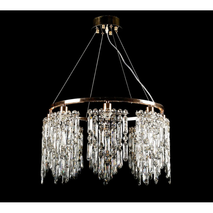 Стиль:Хрустальные люстрыВысота, см:55-130Диаметр, см:60Количество ламп:8MAX мощность лампы, Вт:40Напряжение, В:220Патрон:Е14Цвет:золото, белый.Материал:металл, хрустальПроизводитель:Splendid Ray(Китай)Дополнительная информация:регулировка высотыТип крепления:на кронштейн