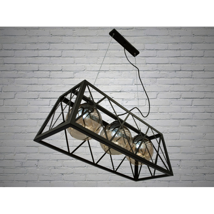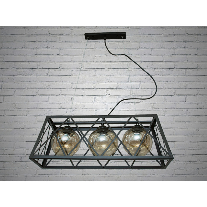 В середині світильника розташовані три скляні кулі, які служать плафонами для ламп. Скло куль має легкий димчастий відтінок, що додає м'якого розсіювання світла, створюючи затишну атмосферу. Лампи всередині куль відкриті для огляду, що підкреслює індустріальний стиль світильника.