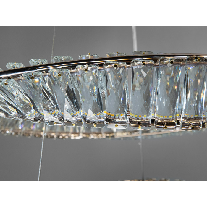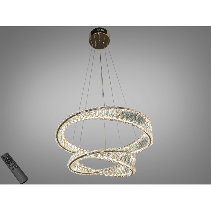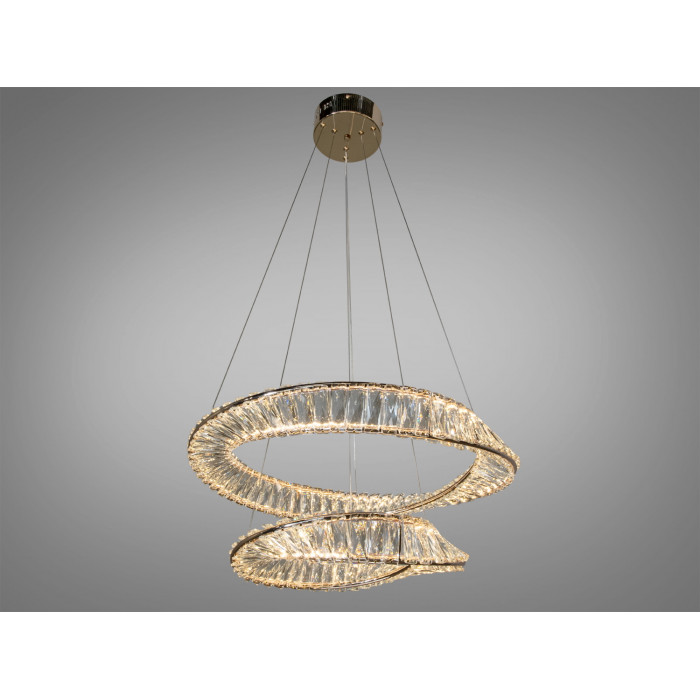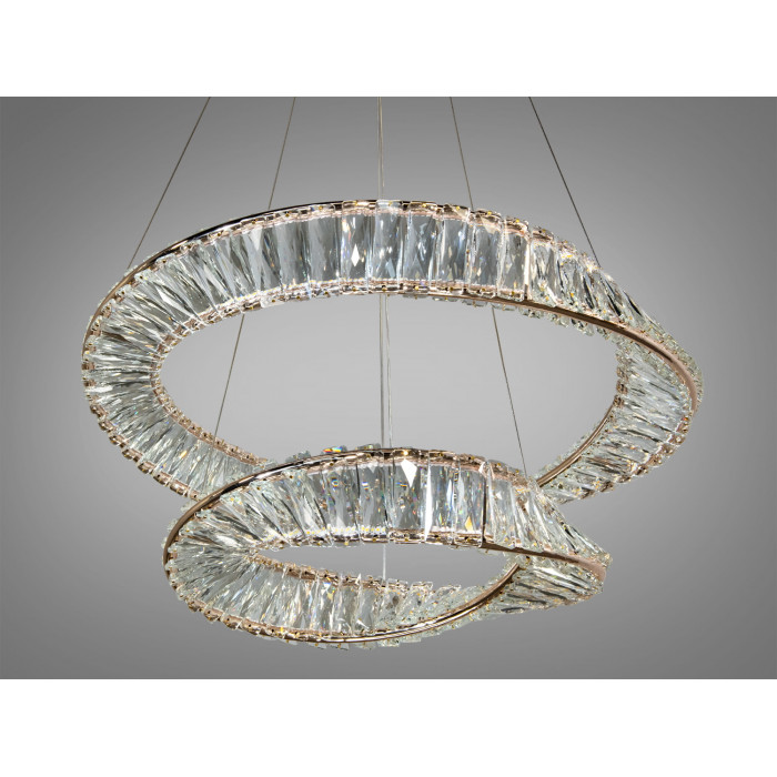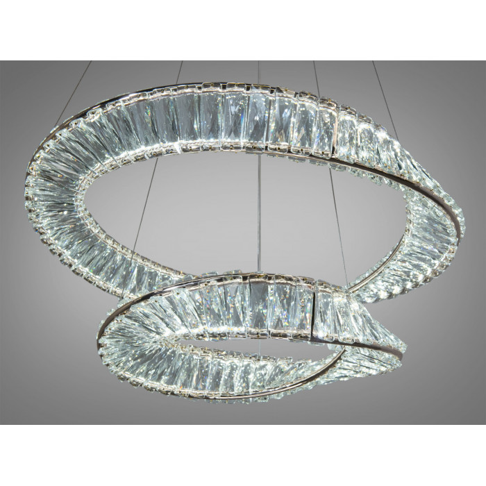 Інноваційна кришталева світлодіодна люстра українського виробника ТМ "Діаша". Ця люстра вражає своєю потужністю 110 Вт і хромованим кольором, який додає їй сучасного вигляду та легкості. Виконана в стилі стрічки Мебіуса, люстра складається з двох плафонів на паралельних рівнях, створюючи безперервний просторовий візерунок.