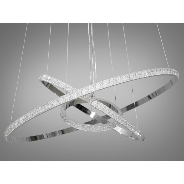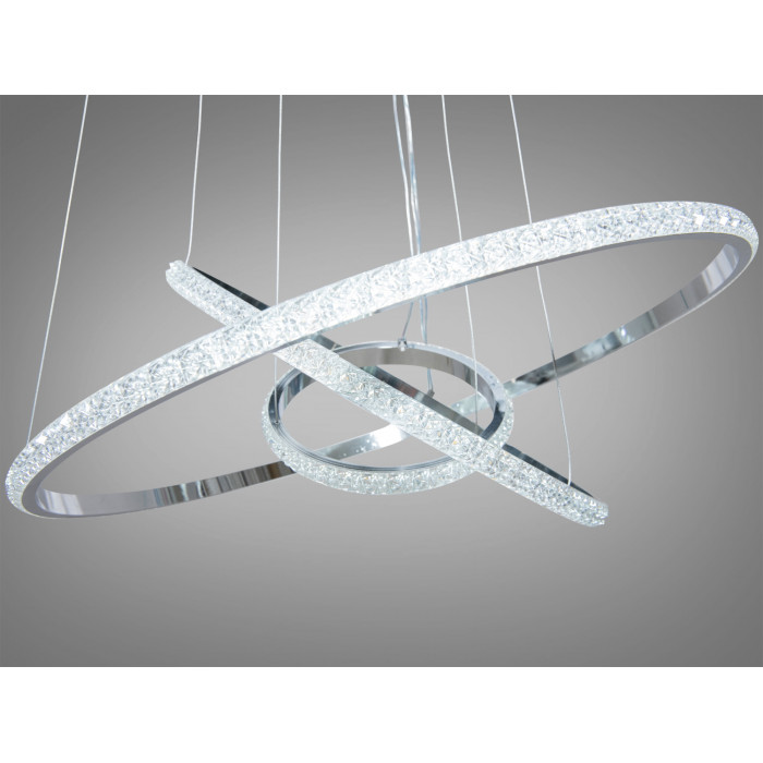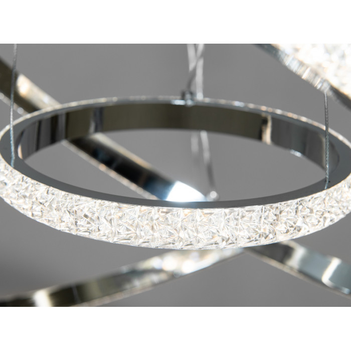 Світлодіодна люстра з димером від ТМ "Діаша" потужністю 100 Вт є втіленням майстерності дизайну та новаторства у сфері освітлення. Завдяки своїм алюмінієвим кільцям, обрамленим м'яким силіконовим розсіювачем, вона створює ілюзію плавного, невагомого танцю світла в повітрі. Кожне кільце, зі своїми кришталевими інкрустаціями з оптичної смоли, переливається під кожним кутом, відображаючи і розсіюючи світло так, що вся кімната наповнюється теплим і затишним сяйвом.