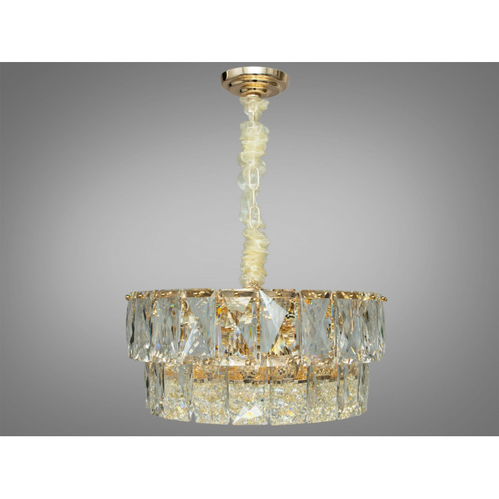 Основна особливість цієї люстри 2024 - це комбінація великих прямокутних огранених матованих кришталів, які розташовані по краях люстри. Їхні матовані прозорі поверхні створюють ефект сучасності та розкоші, а матованість забезпечує ніжний розсіюючий світловий ефект.