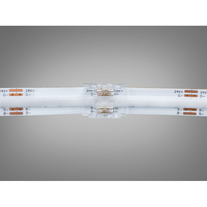 Компактний та зручний конектор для RGB світлодіодної стрічки на 4 контакти (4-pin) розрахований на швидке та надійне з′єднання без пайки. Його ширина становить 10 мм, що ідеально підходить для більшості RGB LED стрічок стандартного формату.