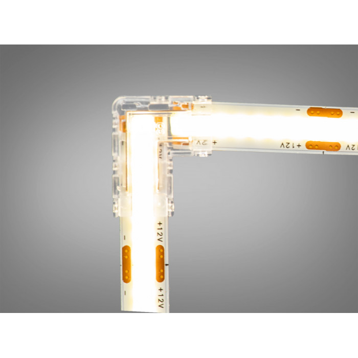 Універсальний конектор для світлодіодних стрічок шириною 8 мм з пробивним механізмом контактів розроблений для надійного, швидкого та безпаяльного з’єднання одноколірних SMD і COB LED стрічок. Його напівпрозорий корпус дозволяє візуально контролювати якість з′єднання та робить процес монтажу максимально зручним.