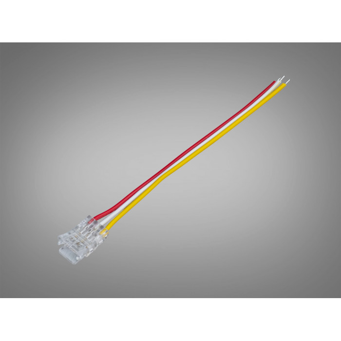 Практичний і надійний односторонній двоконтактний конектор для LED стрічки шириною 8 мм — це оптимальне рішення для швидкого підключення одноколірних SMD або COB стрічок без пайки. Оснащений пробивним механізмом контактів і вбудованим проводом довжиною 115 мм, він ідеально підходить для компактного і довговічного монтажу у різних проектах освітлення.