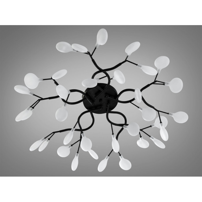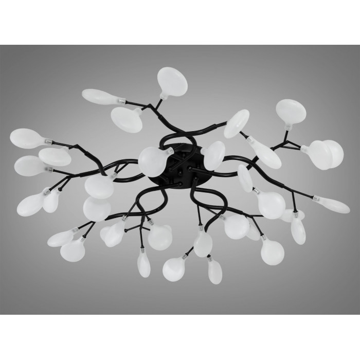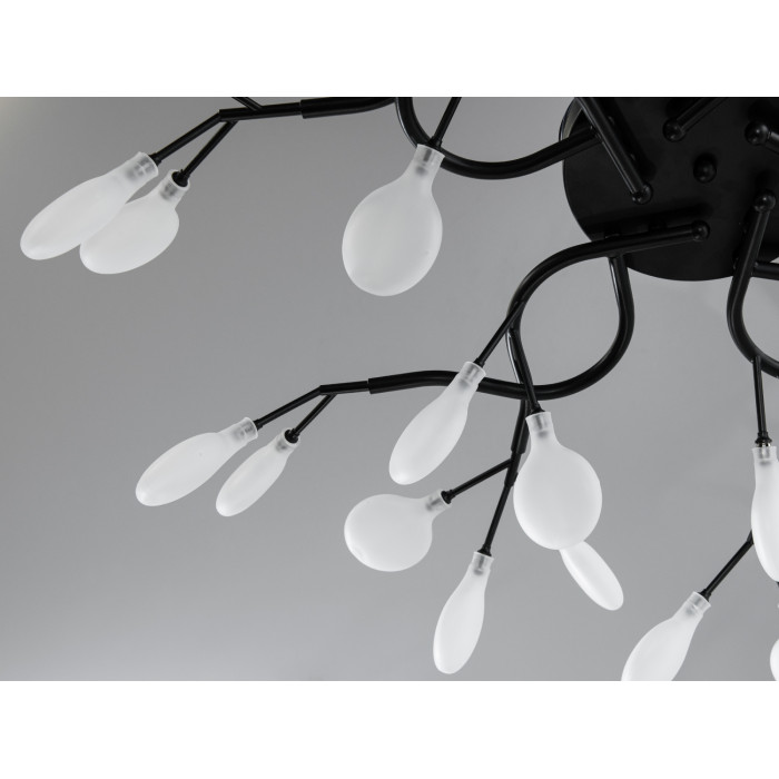 НОВИНКА! Стельова люстра "Світлячок" від українського бренду "Діаша" з 35 лампами G4, що приховані в білих матових плафонах у формі сплюснутих класичних ламп, є поетичною метафорою у світі освітлення. Чорний колір конструкції контрастує з білосніжними плафонами, створюючи вишуканий дизайн, який нагадує зачароване дивовижне дерево, що розкинуло свої гілки вдень та перетворюється на світлову феєрію вночі.