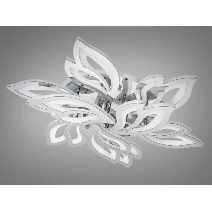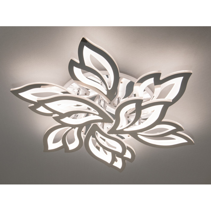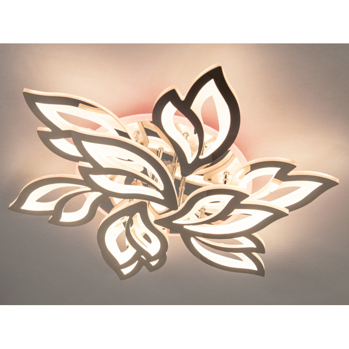 Ця красива LED люстра з пультом, диммером і підсвічуванням створена для тих, хто цінує вишуканість, функціональність і сучасні технології. Її витончений дизайн у формі листя, що розпускається, створює враження легкості та витонченого об'єму, який підкреслює стиль і характер будь-якого інтер'єру. Хромовані елементи додають люстрі блиску та глибини, відбиваючи світло і роблячи її центральним елементом приміщення.